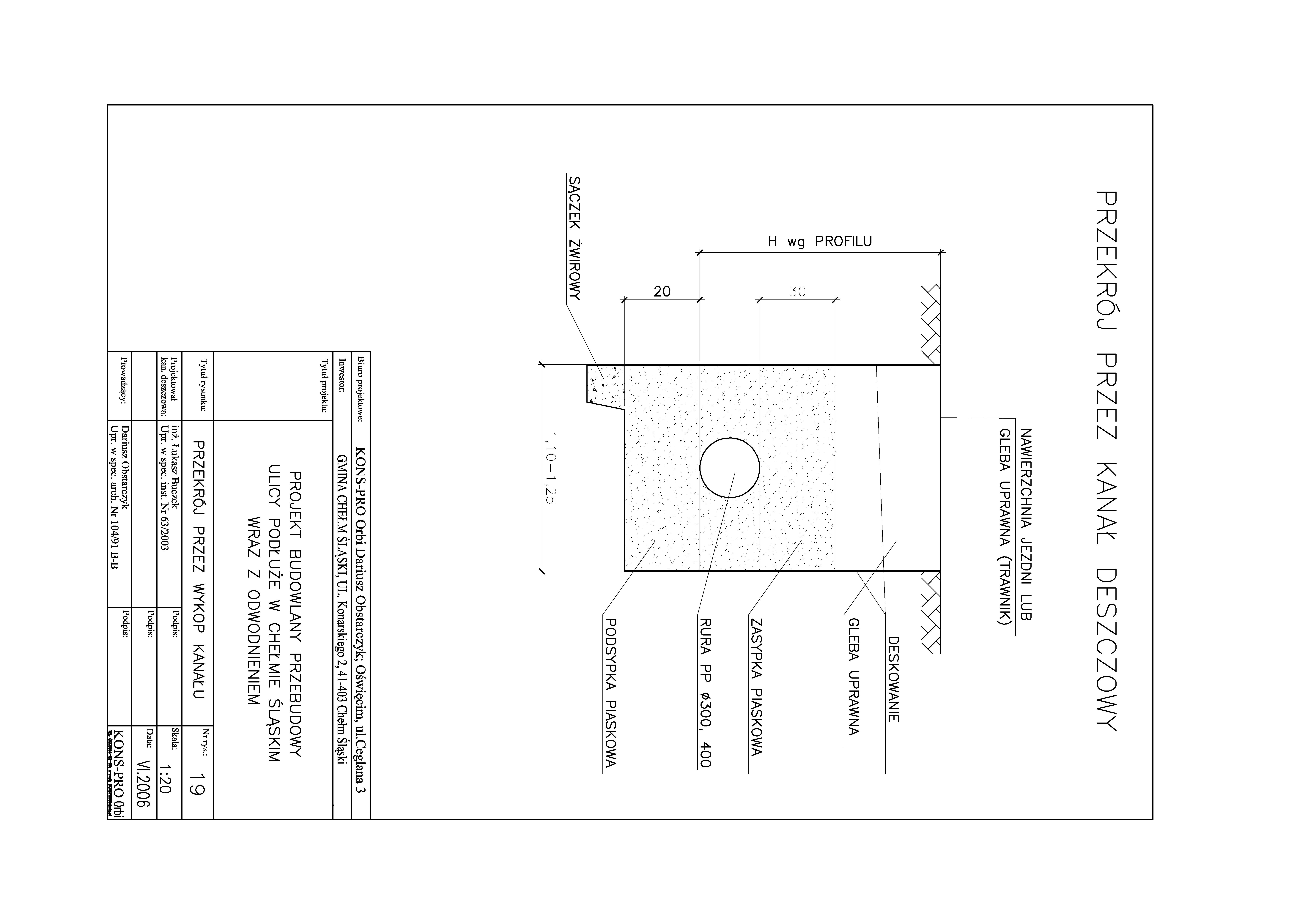 Symbol | 341/II/18/2007 | Osoba odpowiedzialna | <BRAK> | Data utworzenia | 2007-08-30 | Udostępnił | Michał Palka | Data udostępnienia | 2007-08-30 14:14:19 | Data ost. zmiany | 2007-11-23 14:23:58 | Pliki | | Ogłoszenie o udzieleniu zamówienia | 66,16 kB | | Ogłoszenie o wynikach | 266,58 kB | | Prefabrykat ścieku | 254,53 kB | | Profil podłużny cz3 | 1,54 MB | | Przekrój typowy I | 1,29 MB | | Schemat studni 1000 | 981,19 kB | | Schemat studni 1000 z osadnikiem | 960,92 kB | | Schemat wpustu | 1,14 MB | | Separatory lamelowe | 593,77 kB | | Specyfikacja techniczna | 650,91 kB | | Wlot rowu | 1,64 MB | | Współpraca separatora z osadnikiem | 544,28 kB | | Wykop | 1,23 MB | | Wylot kolektora | 686,32 kB | | Zagospodarowanie | 2,20 MB | | Zjazd indywidualny | 1,36 MB | | Ścianka czołowa wylotu | 558,78 kB |