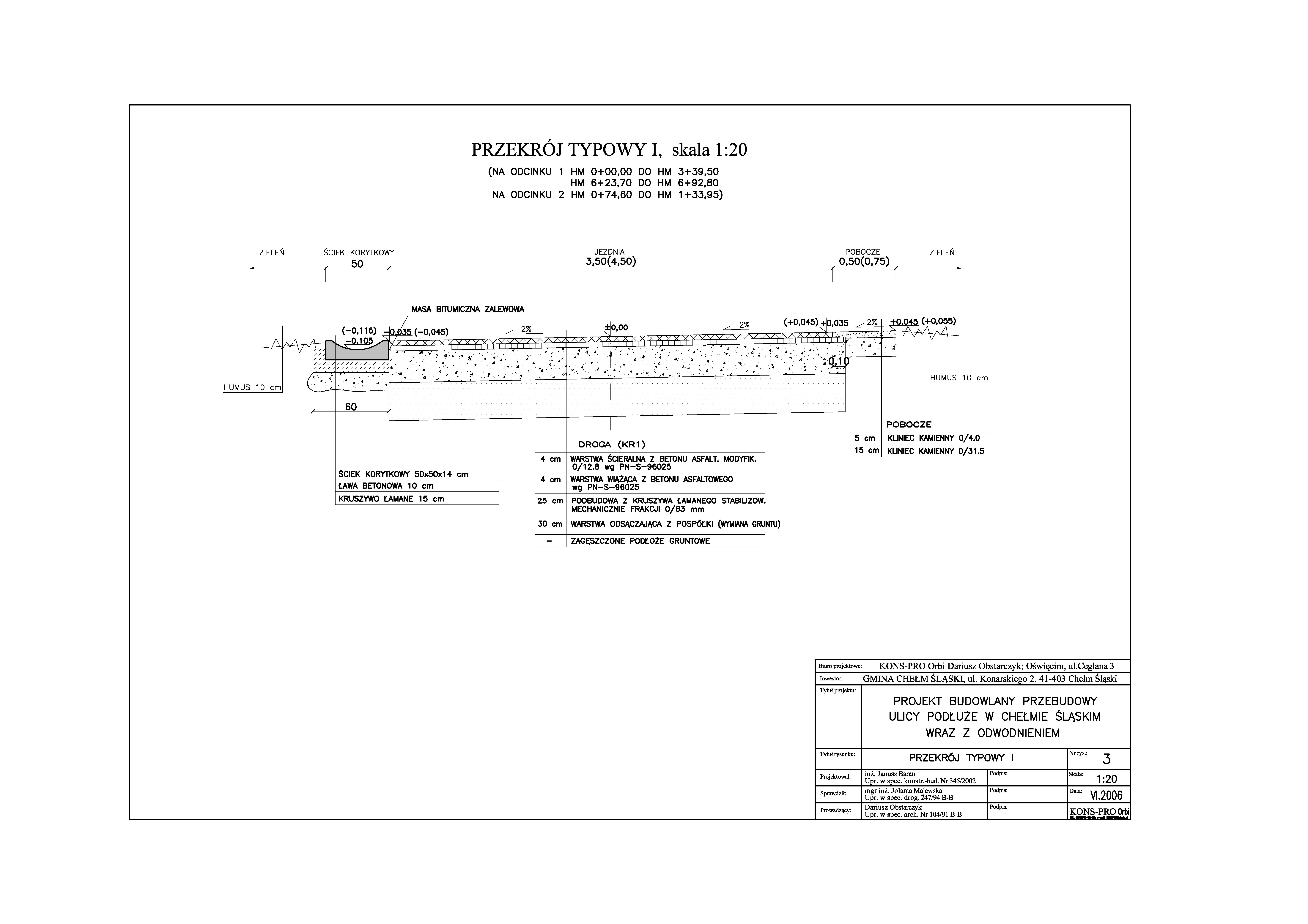 Przebudowa ul. Podłuże w Chełmie Śląskim Odcinek I - w kilometrażu od 0+00 do 3+76,85 Odcinek II – w kilometrażu od 7+11,45 do 9+41,25 |